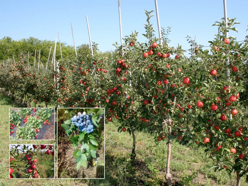 Площадь плодово-ягодного сада составляет 238,2 га, в том числе плодоносящие 232,2 га (яблоня 190,5 га, 15 га груши, 2 га земляники, голубика 30 га).